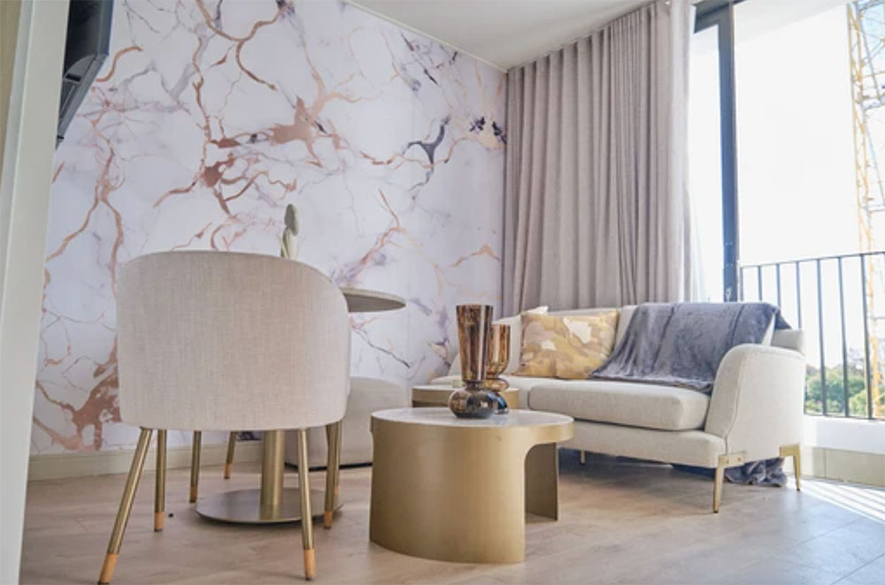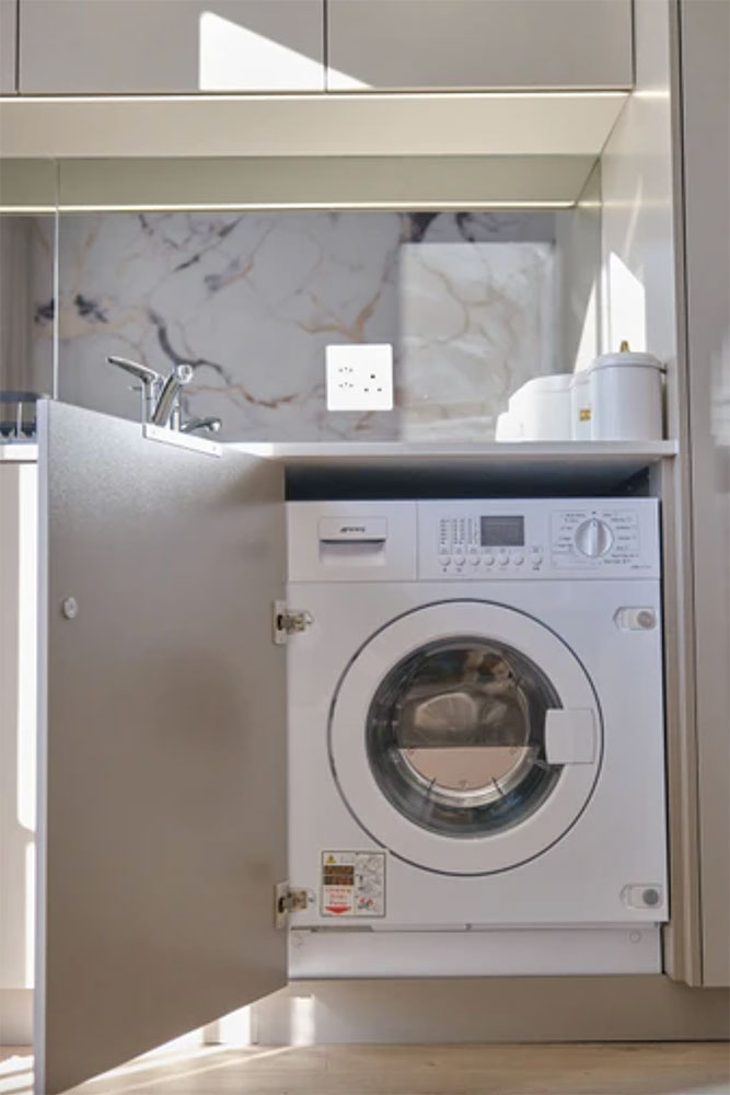 Contemporary Features: Guests can unwind with streaming-enabled entertainment, make use of a washing machine, and relax on a private balcony overlooking the city. Additional features include a dining area, comfortable seating space, and a coffee machine.
